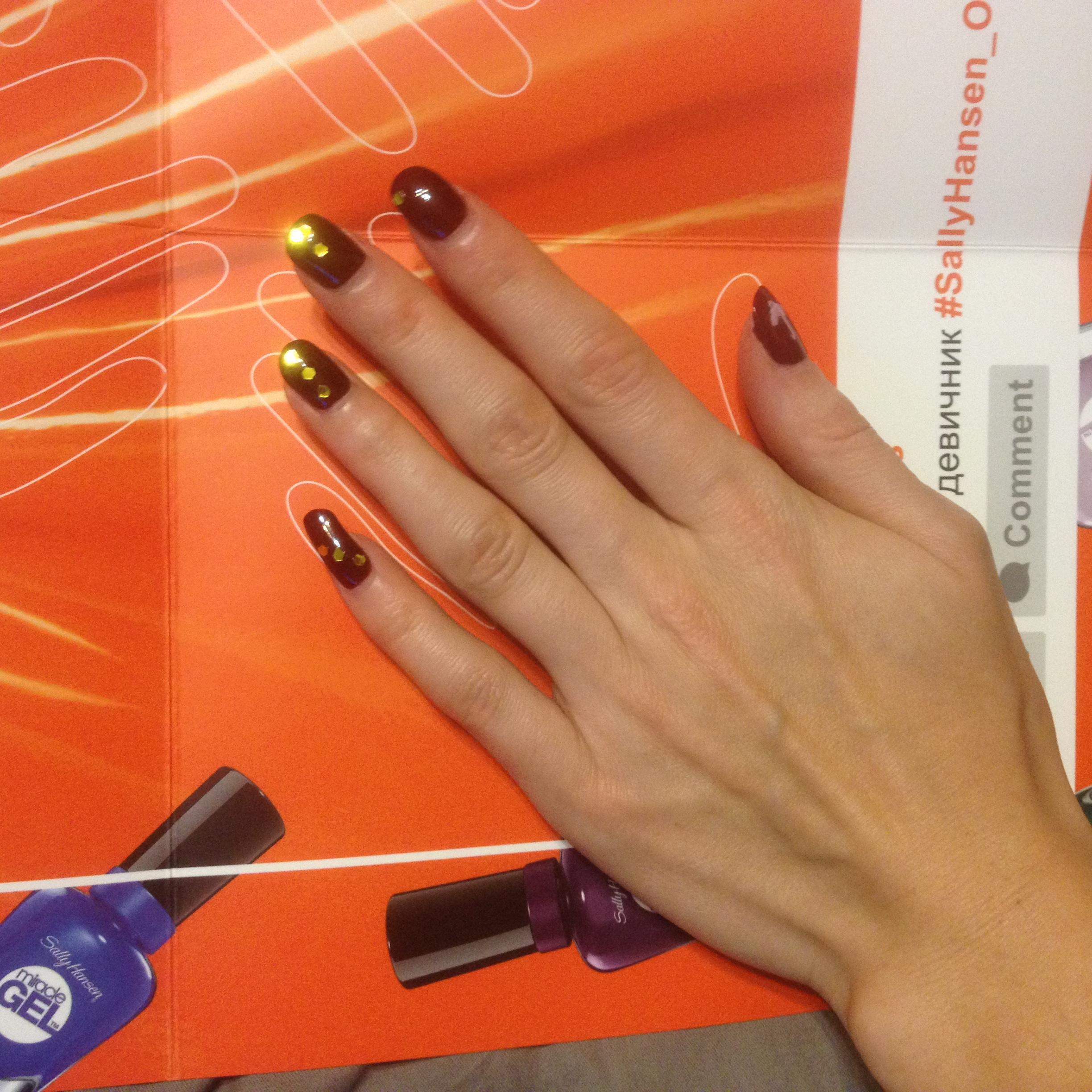 Очень рада попробовать лак для ногтей sally hansen miracle gel. Давно знакома с этой маркой и пользуюсь лаками для ногтей. Miracle gel вообще классный! Прекрасно наносится на ногти. Очень удобная кисточка. Держится дольше чем обычный лак и немного меньше чем шеллак. Быстро сохнет. Зачем платить большие деньги, когда можно дома самой сделать прекрасный маникюр. Смотрится шикарно, очень обьемным. Палитра цветов мне очень нравится. И что немаловажно лак легко снимается обычной жидкостью для снятия лака.