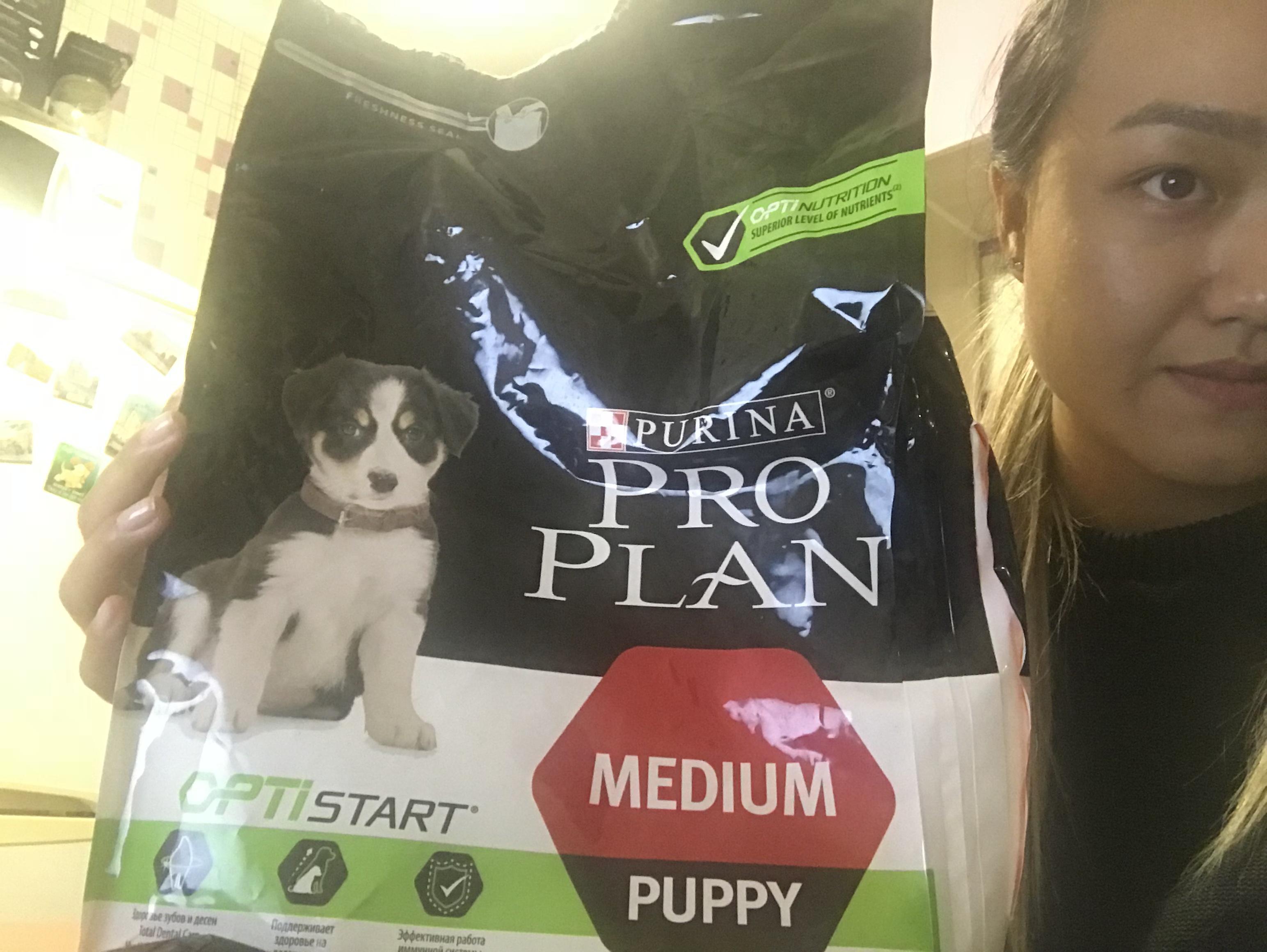 Курьер привез посылку до двери. Упаковка весом 3кг, корм Purina Pro Plan opti stasrt medium puppy. У нас щенок хаски (средняя порода), корм подходит идеально по размеру. Со вкусом курицы нашей малышке корм очень понравился, разбухает относительно быстро. Хотя корм заявлен как "премиум", состав у него явно на "премиум" не тянет. И именно из-за состава корма покупать мы его не будем. Как минимум содержание кукурузы и кукурузного глютена - для нас огромный минус. Насколько мне известно, по стандартам добавление кукурузы и всего, что с ней связано - недопустимо. Если в целом посмотреть на состав - это сплошная химия, корм сделан из отходов и различных вкусовых добавок. К сожалению, кроме удобной упаковки плюсов для себя по-крайней мере мы не выявили. Данный корм мы покупать не будем, и советовать тоже.