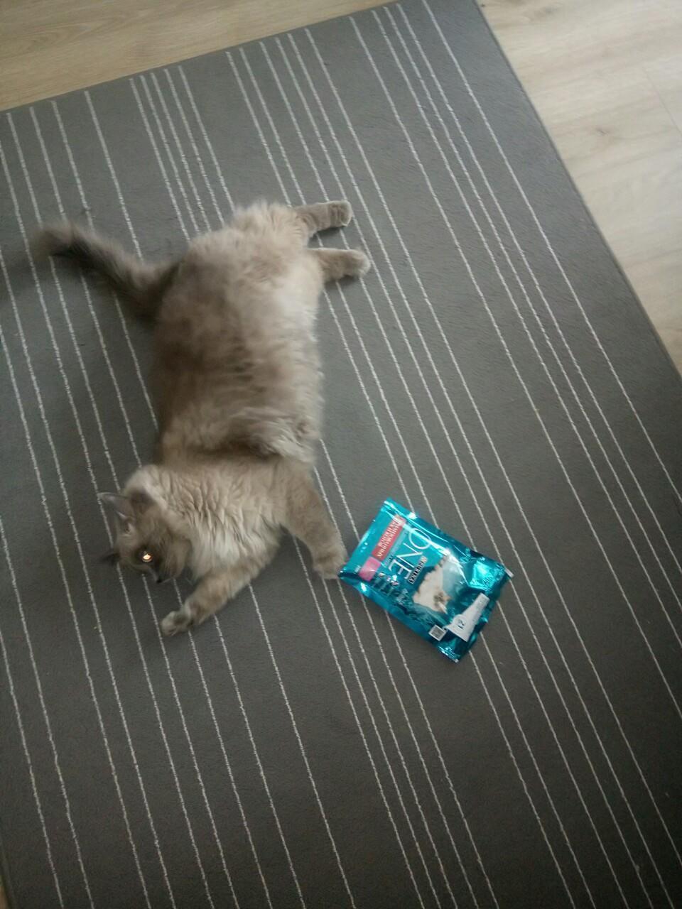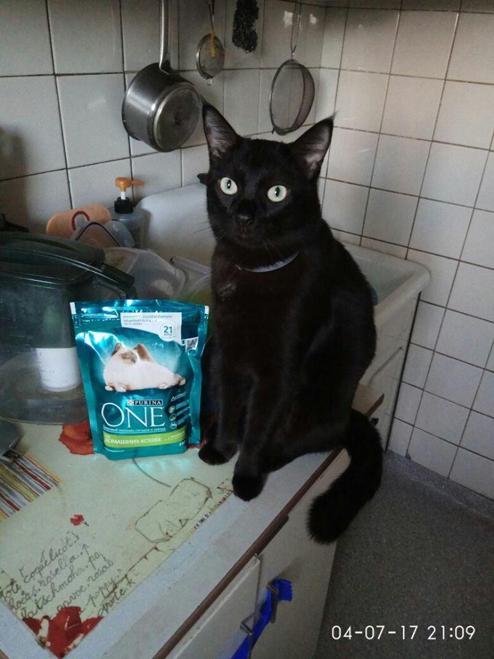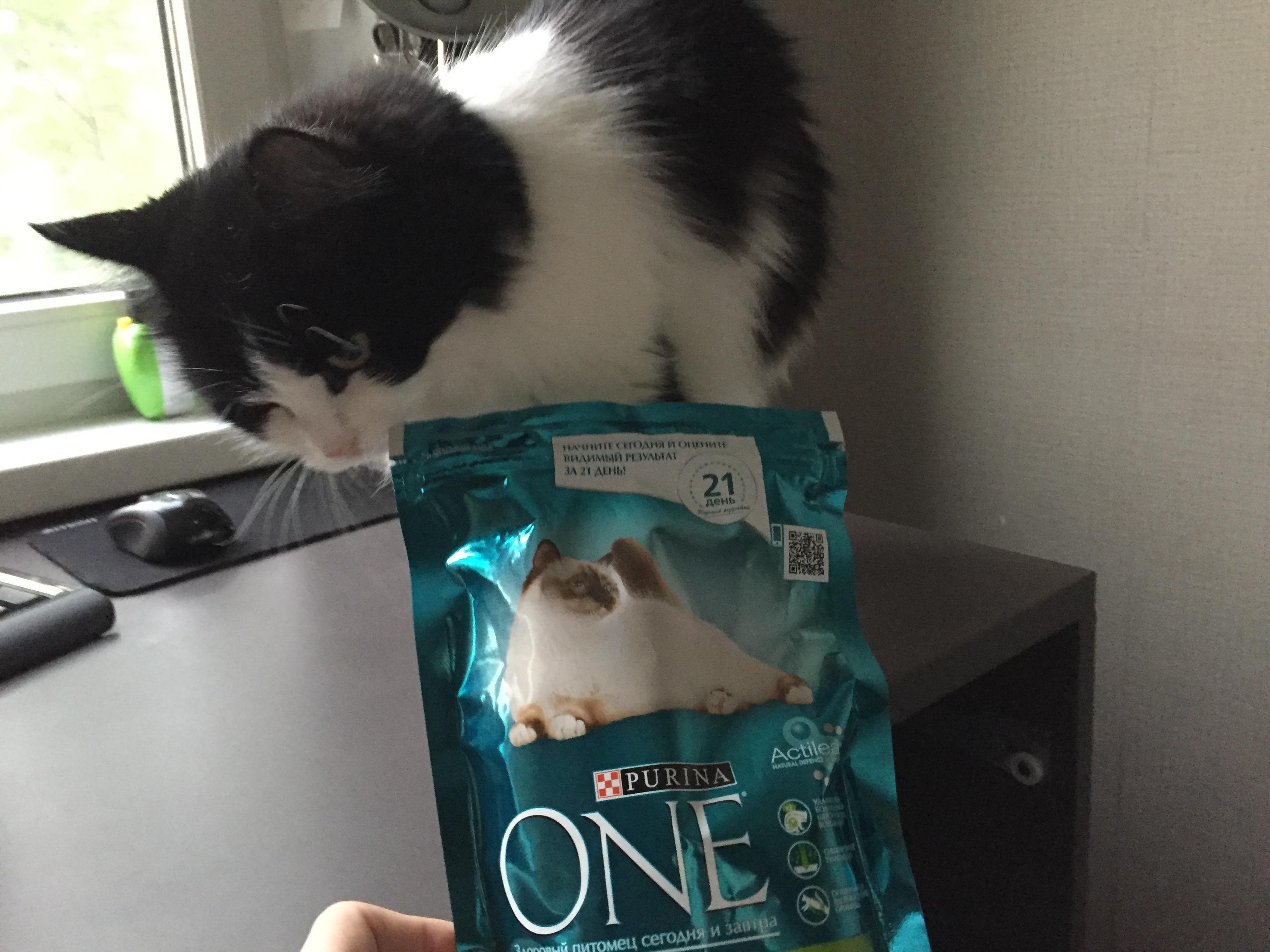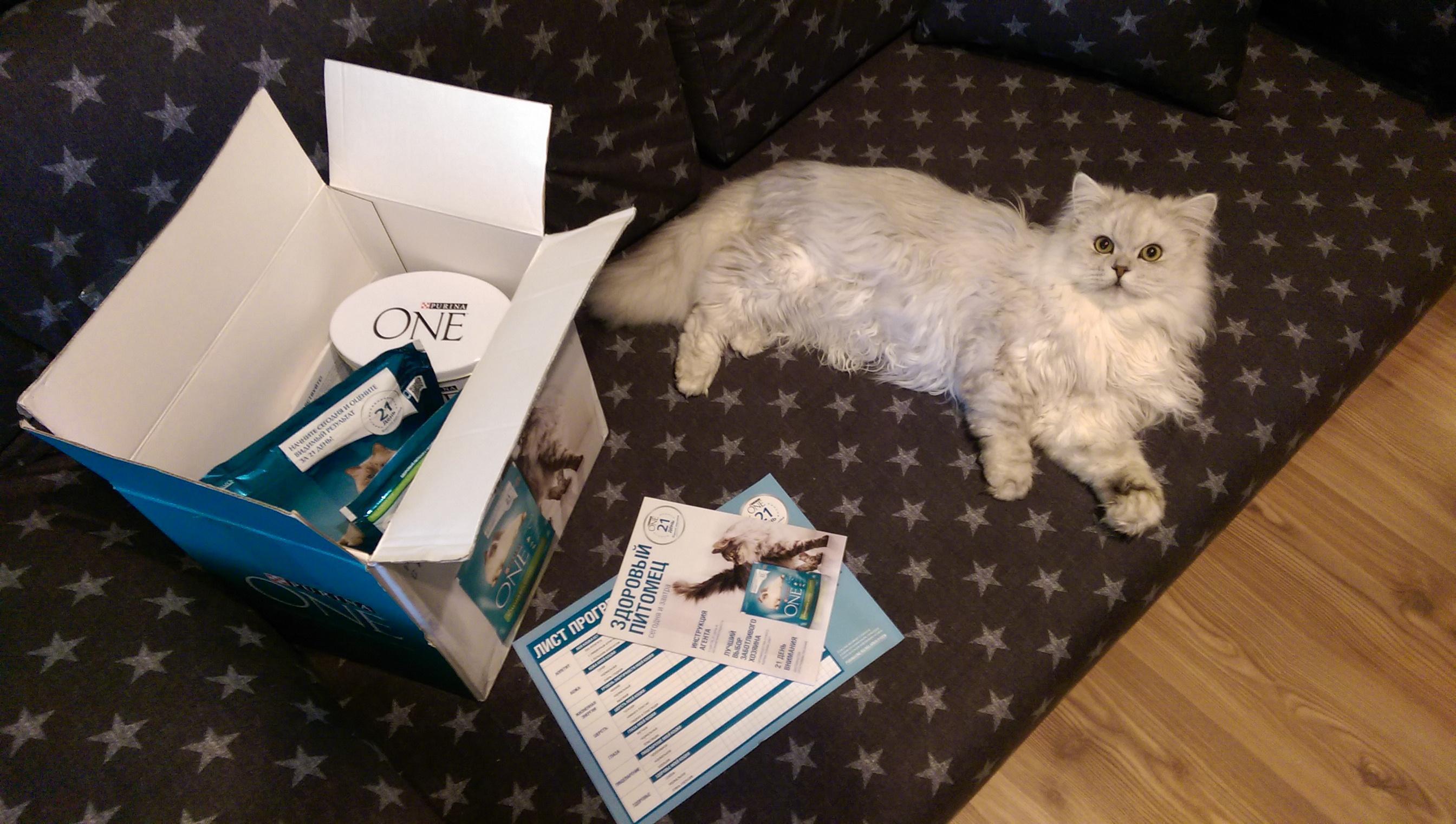 Начнём с того, что приехала коробка Buzz-kit с кормом Purina ONE. В коробке оказался собственно большой пакет корма, маленький пакет для распространения, брошюры, календарь для отметок о питании и удобная жестяная коробка для корма (коробка отличная) Действительно, почему бы не попробовать. Корм хороший, но решать, собственно коту. Обычно он довольно настороженно относится к незнакомым кормам, но тут без вопросов перешёл на новый. Кот ел с аппетитом, был игрив, вёл себя, как и подобает коту и вообще чувствовал себя отлично. Проблем со здоровьем, в частности с пищеварением, шерстью и когтями не было. Иногда мы дополняли сухой корм консервами Purina ProPlan. В итоге – отличный корм, который мы советовали знакомым котовладельцам совершенно искренне. P.S. Кстати сама коробка, в которой пришла посылка, тоже была использована котом как домик)