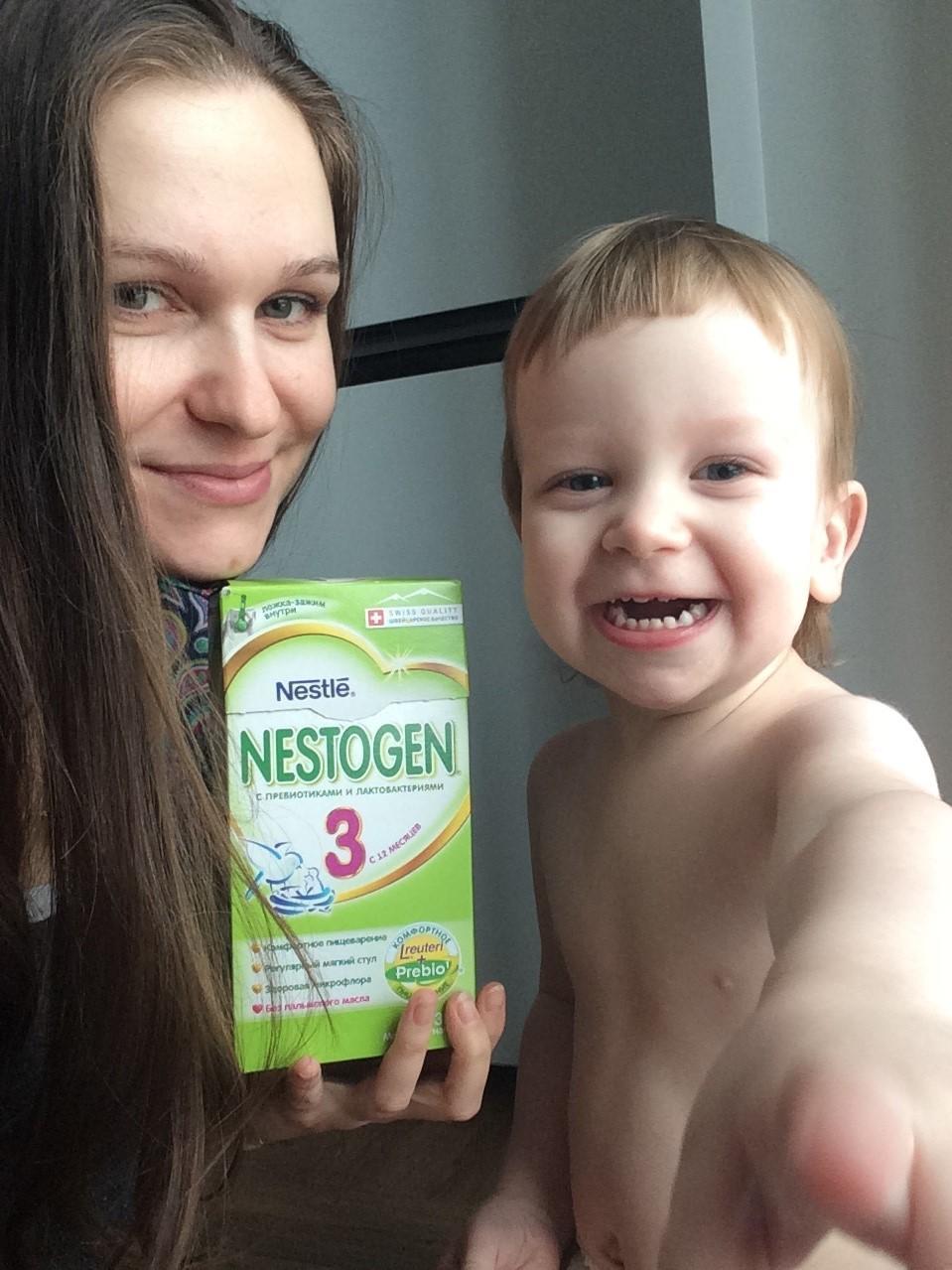 Моему сыну сейчас 1,4 года, молочко Nestogen 3 нам полностью подходит. Его легко найти в магазине по доступной цене, часто встречаю акции, удобная упаковка и ложечка-зажим. Ребенку нравится пить молочко, оно вкусное. С момента перехода на Nestogen ни разу не возникало запоров, как раз из-за них решили поменять смесь. Считаю, что состав с пребиотиками и лактобактериями, большая находка для здоровой работы кишечника малыша.