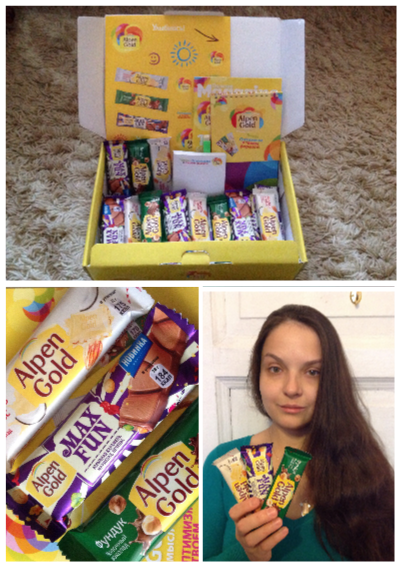 Вот и я получила свой buzz-kit от Buzzaar и Alpen Gold с подарками перед Новым Годом!Три потрясающих вкуса шоколадного батончика в мега удобной новой упаковке очень порадовали меня сладкоежку и моих коллег по офису!Очень удобно брать с собой,маленькая упаковка легко помещается в карман и легко открывается,при этом не пачкаются руки и одежда.Все друзья оценили новый формат любимого шоколада и зарядились позитивом и энергией на целый день!Рекомендую всем попробовать этот вкусненький батончик!