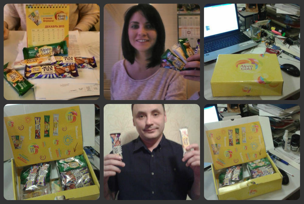 Доброе утро! Очень было приятно получить такую сладкую посылочку, понравилось разнообразие вкусов, особенно всем понравился батончик Alpen Gold, макс фан, очень удивил, возьму его на заметку для сбора сладких подарков деткам, думаю понравиться. Белый шоколад с миндалем и кокосом, это мой любимый! Шоколадного батончика хватает на один раз попить чай, очень удобно! Хорошо открывается упаковка, матовая, яркая! Вообще я в восторге от батончиков Alpen Gold,!