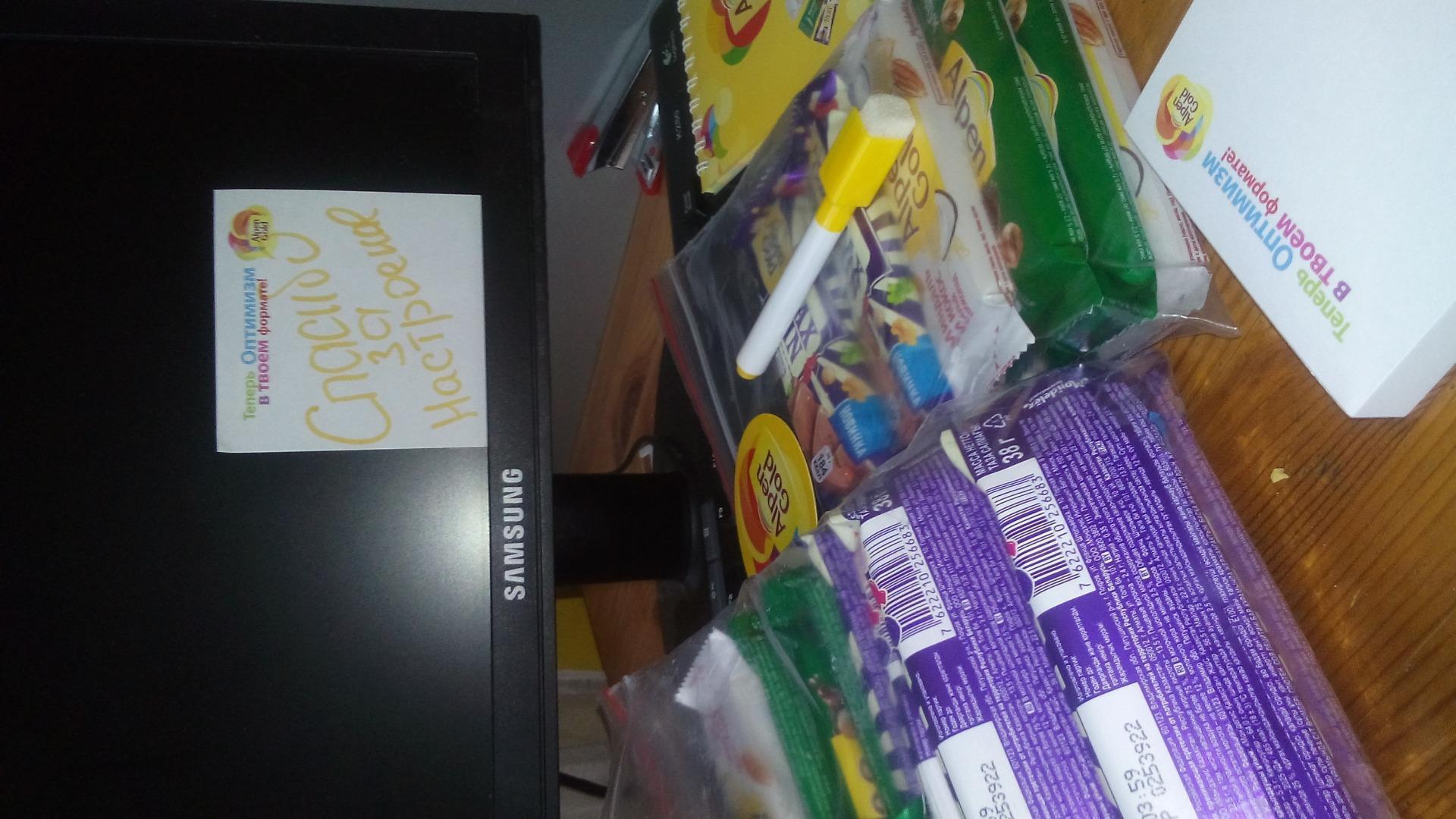 Спасибо за возможность продегустировать такой хороший шоколад, с таким множеством разнообразных вкусов. В нашем отделе каждый нашел для свою шоколадку. Кто любит белый шоколад, кто-то отдал преимущество классике с орехами, а кто то открыл новый вкус с печеньем,мармеладом и шипучкой "как в детстве". Идеальный перекус на короткий перерыв с чаем. Еще вчера привезли шоколад, а сегодня коллеги пошли за ним в магазин. Ну, а дополнительные бонусы в виде наклеек и магнитиков, уже украшают наш рабочий холодильник, кто то даже домой забрал "для настроения"