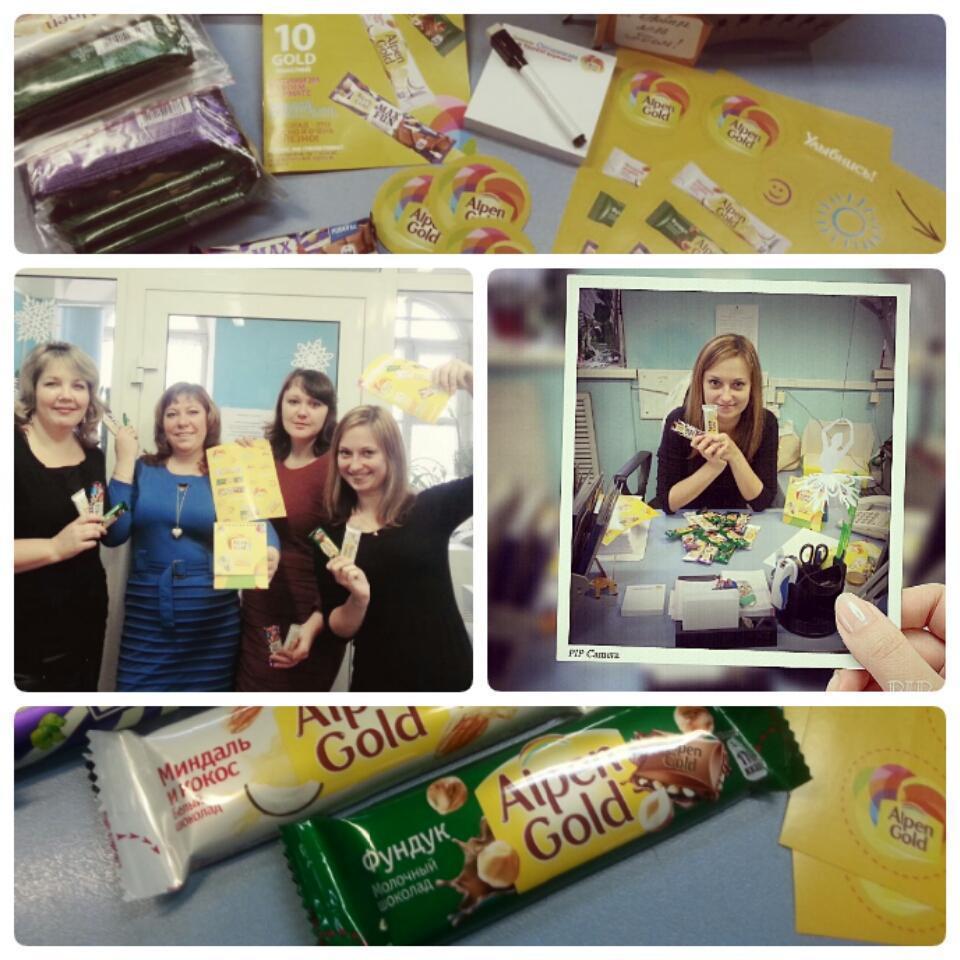 Казалось бы - что может разукрасить обычный, будничный рабочий день?! Оказалось, это сделать достаточно просто! Потрясающие вкусы мини-батончиков Alpen Gold помогли настроить наш большой коллектив на положительную нотку. Все оценили компактность, благодаря которой шоколадкой совсем не обязательно делиться с ближними;), он удобно вмещается даже в самую маленькую сумочку или карман (так, что батончик всегда может быть под рукой), ну и, конечно же, необычайность взрывающейся карамели не смогла оставить равнодушным даже самого скурпулёзного скептика! Мы в восторге! Спасибо!