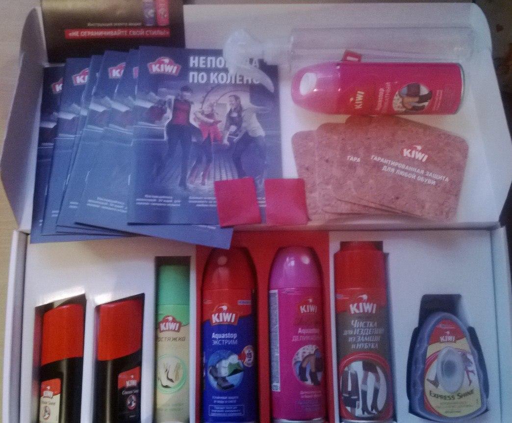 Решила принять участие в акции от компании #buzzaar. Получила коробочку с набором средств для обуви #kiwi.Первым стала тестировать самое главное средство #Aquastop - спрей для защиты от влаги. Взяла две одинаковые полоски кожи, на одну нанесла спрей, на другую нет. Прошло несколько минут и на каждую распылила воду из пульверизатора. Необработанная полоска набухла, а на обработанной влага собралась капельками. Сказать, что я довольна-ничего не сказать! Теперь пользуюсь только Kiwi AquaStop и вам рекомендую!