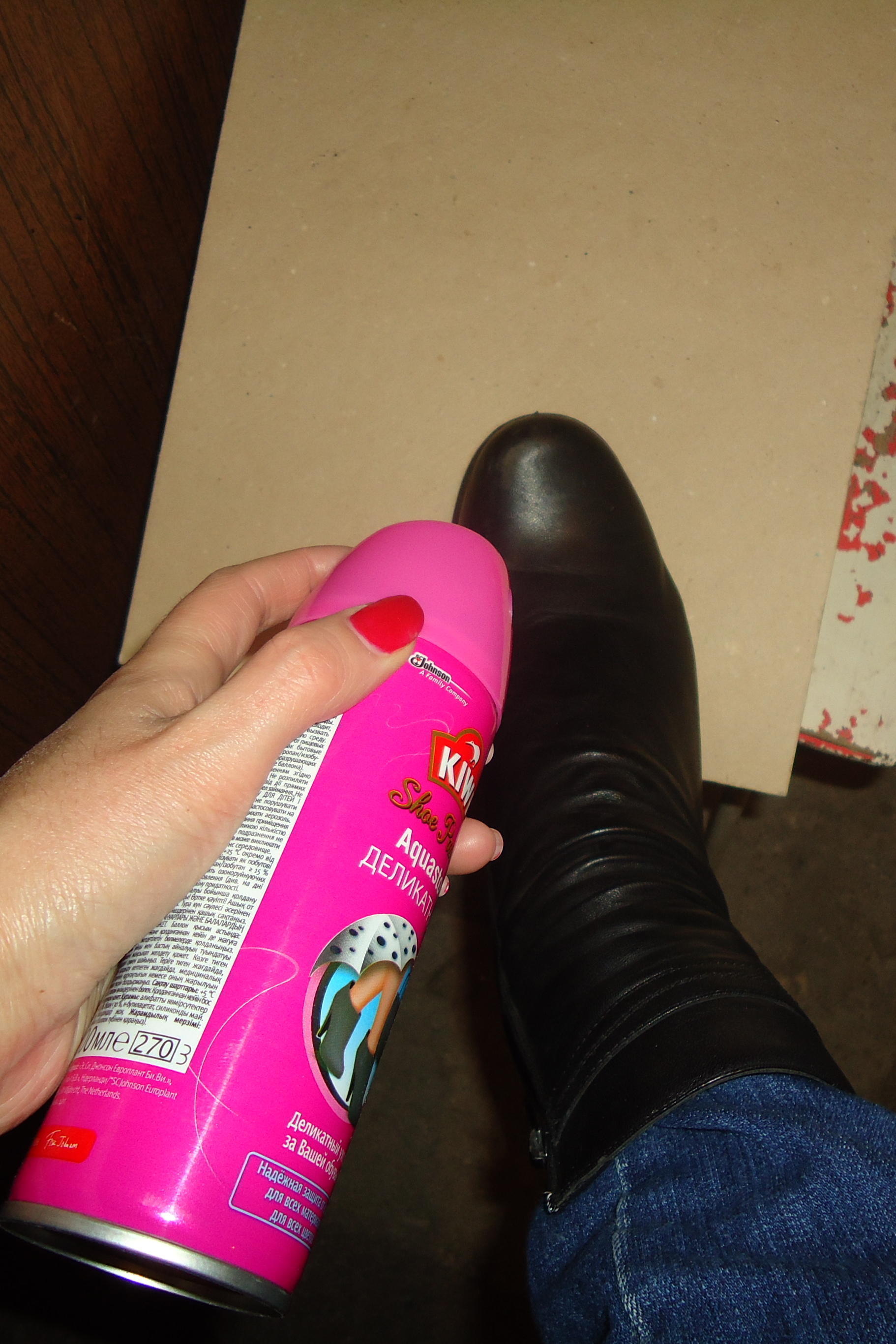 Большой выбор средств для обуви из разного материла и цвета. Все средства удобны в использовании! Особенно понравился спрей Aquastop ЭКСТРИМ. Легко распыляется, быстро высыхает, на обувь липнет меньше грязи,а главное мои ноги не промокали! хотя без защитного средства иногда в сырую погоду такое случалось. Немного смутил только резкий запах от спрея, но он быстро прошёл.