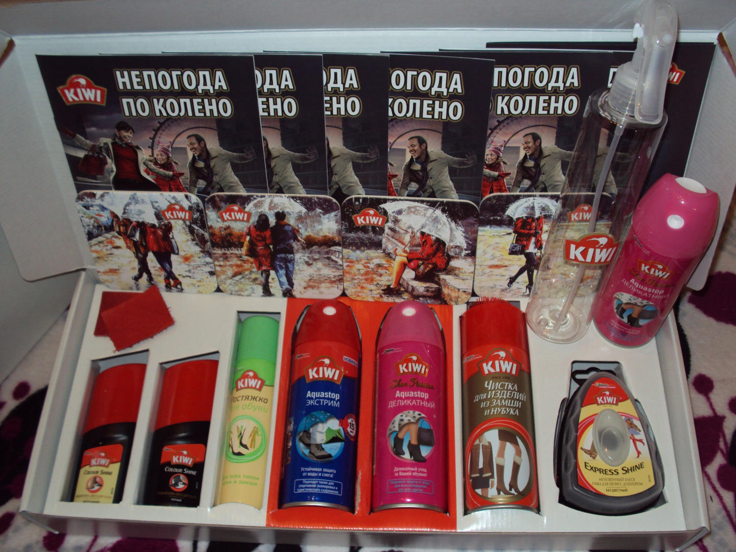 Протестировала KIWI Aquastop и остальные средства с коллегами, эксперимент с двумя кусочками кожи ,эффективно защищает от снега и дождя. Протестировав растяжку для обуви, могу сказать,что зимние сапоги стали более удобными.Так же нам понравилось ,что линейка дает такое разнообразие изделий для ухода :можно использовать и для кожи, и для замши, и для нубука. Всем понравилась продукция KIWI