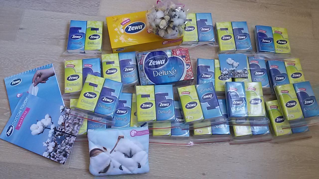 Мне очень понравился баз кит от Buzzaa и Zewa. Платочки Zewa очень прочные и в тоже время очень мягкие. Они отлично подйдут и для взрослых и для детей. Уже сейчас начался сезон простуд и без этих платочков мы не выходим из дома, да и дома они у нас очень востребованы. Самое главное это не только практично, но и гигиенично, т.к. платочки одноразовые. Это очень ссущественный плюс в отличии от обычных тканевых патков, где бактерии и микробы размножаются. Также нам удалось попробовать Салфетки для лица в коробке Zewa Cotton Touch, которые можно использовать не только для лица, тк они универсальны. Букет от Zewa очень нежный и уже украшает мою полочку.