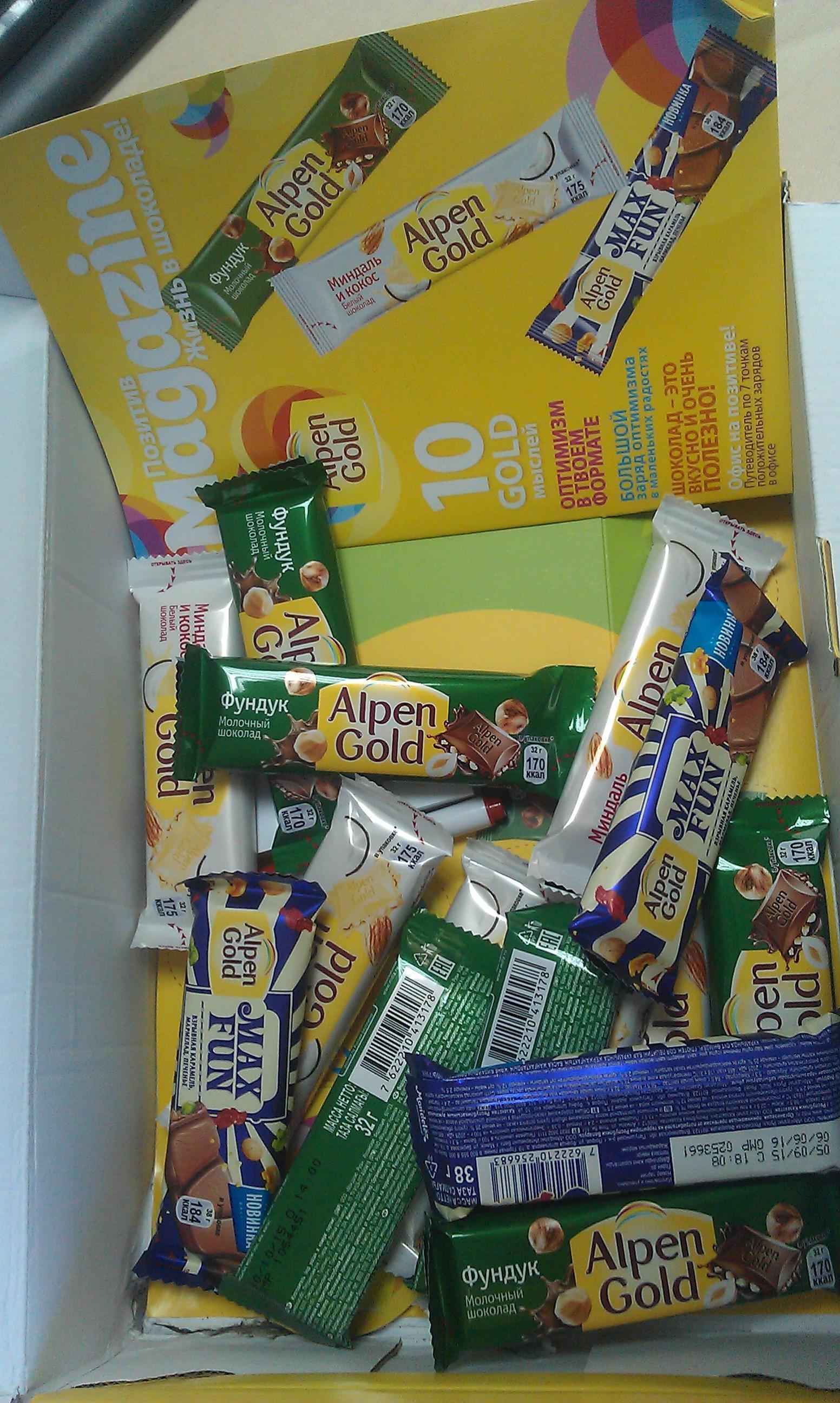 Новый формат любимого шоколада Alpen Gold - это шоколадные батончики которые удобно взять с собой в поездку, на работу, да куда угодно. Они помещаются в карман и маленькие женские сумочки. Чаепитие на работе стало приятней, шоколадка это на всех, а ботончик только для себя любимого. Новый вкус с мармеладками и печеньем вызвал полный вострог у коллег и у меня. До этого тестирования такое сочетание в шоколаде я и предположить не могла и наверно побоялась бы купить в магазине, сочетание просто улет. Очень, очень вкусно.