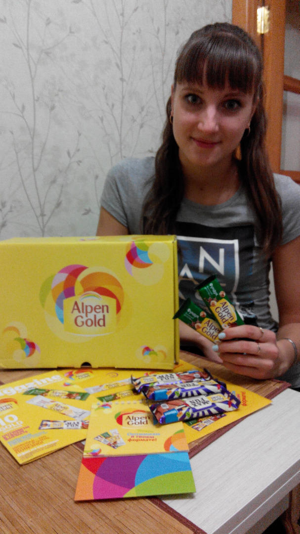 Хотелось бы поделиться мнением об участии в акции Alpen Gold, она оказалась сладкой очень вкусной! Каждому из нас просто необходим перерыв, и очень здорово его провести с чудо шоколадкой Alpen Gold! Эта миниатюрная плиточка удобна для перекуса за кружочкой чая в эти холодные зимние деньки! Не крошится, помещается в кармашек любой даже совсем маленькой женской сумочки! Так же очень удобно перекусить "за рулем"! А множество вкусов Alpen Gold делает каждый перерыв таким разным а главное вкусным!
