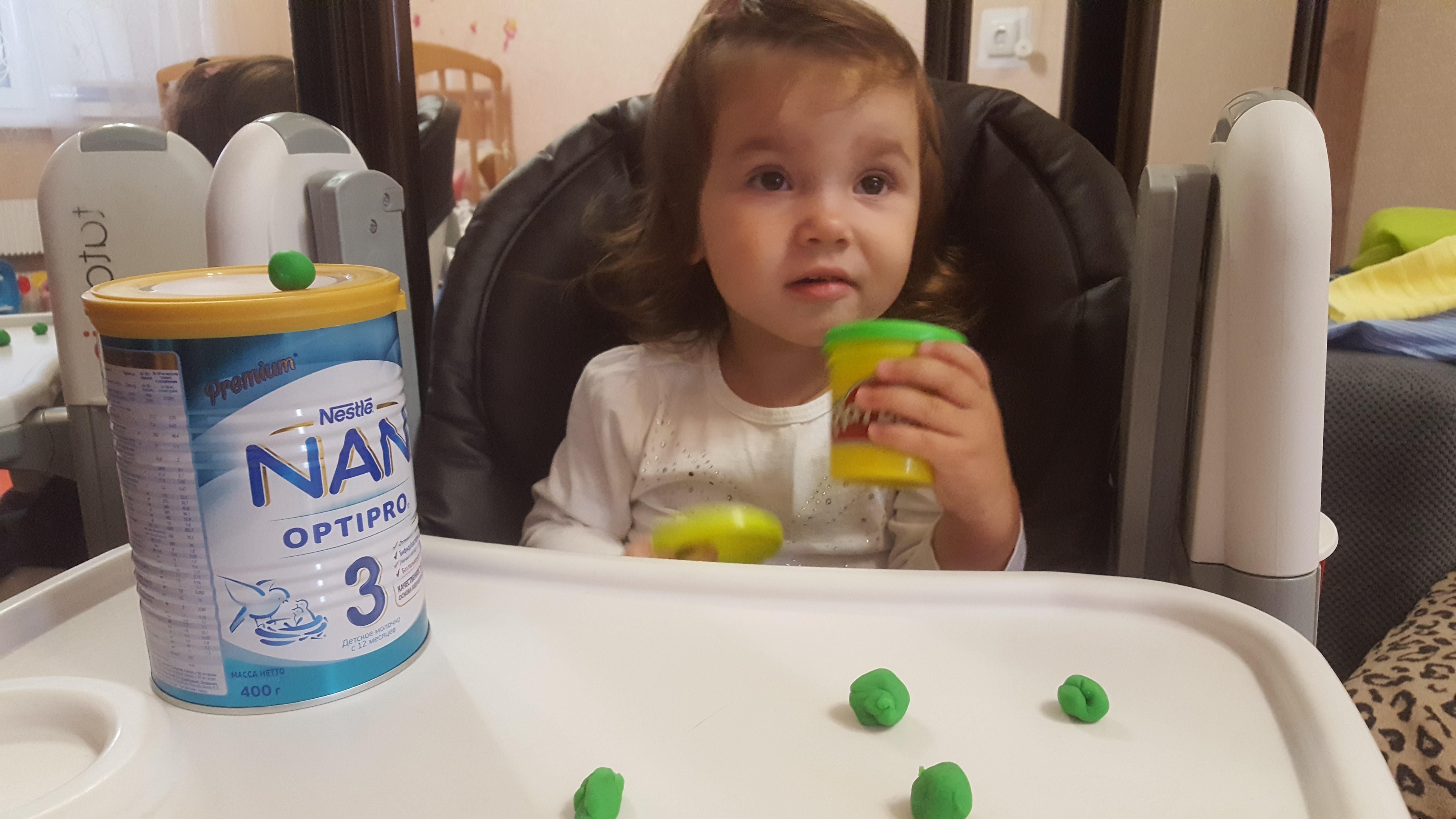 Детским молочком Нан 3 начала кормить малышку совсем недавно. Молочко Nan 3 optipro предназначен для замены коровьего молока в рационе ребенка. Благодаря оптимизированному белку ребёнок получает ровно столько белка, сколько ему необходимо для роста и развития. Живые бифидобактерии помогают укрепить иммунную систему. Умные липиды играют важную роль в становлении иммунной системы малыша и способствуют развитию мозга и зрения. Очень важно что в составе нет пальмового масла! Растворяется очень хорошо, не оставляя комочков. Аллергии у моей малышки не появилась, проблем со стулом тоже не было. Моей дочке очень понравилась эта смесь. Один минус данной смеси - дорогая цена. Но радует, что очень часто на эту смесь бывает акция в детских магазинах.