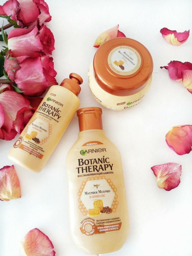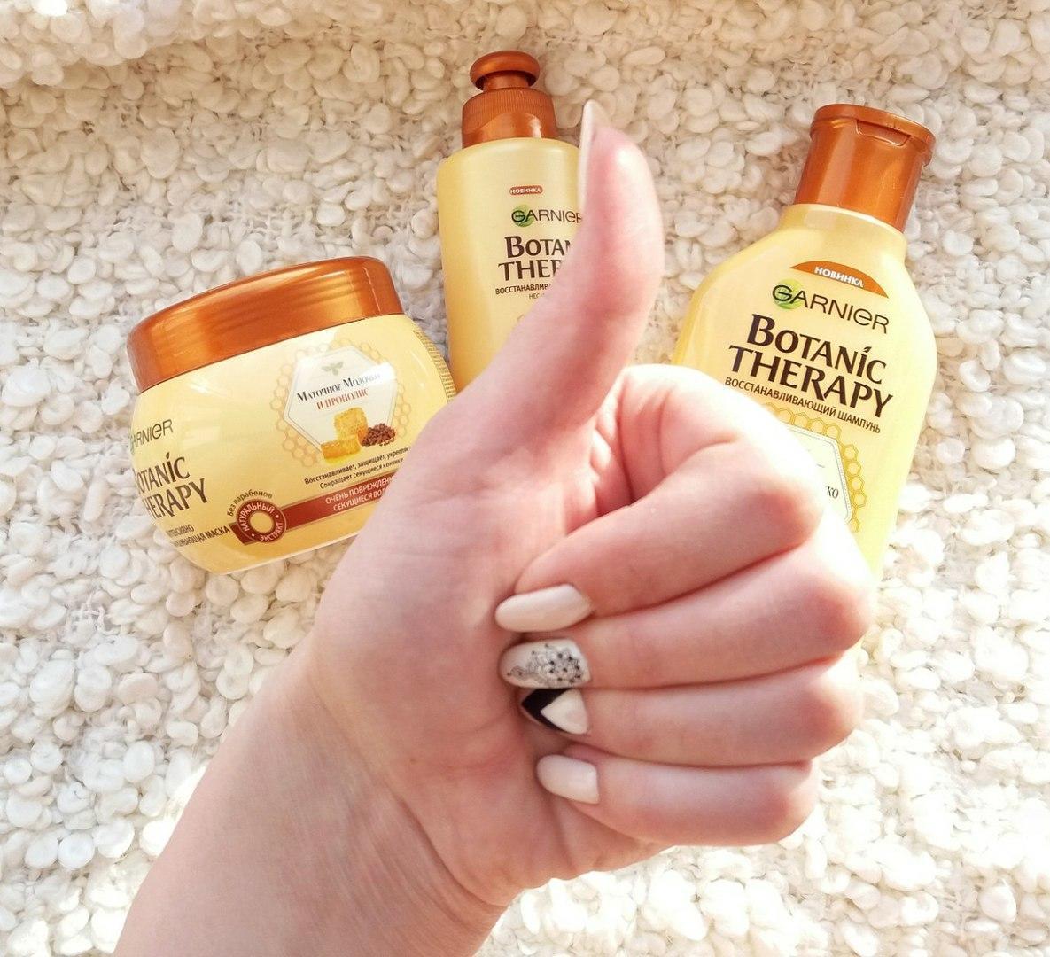 Всем известно, что красота женщины заключается не только в ее внутреннем мире, внешней красоте, но а также и в силе волос. В нашем современном мире, сохранить силу и красоту своих волос требует усилий. И благодаря большому разнообразию питательных средств это не составит особого труда, главное найти время и желание. Мои волосы в зимний период нуждаются в дополнительной подпитке.Нужен обязательно восстанавливающий комплекс, желательно с натуральным составом. Я очень люблю приятные ароматы и пройти мимо серии Botanic Therapy (Маточное молоко и прополис) я не смогла. Еще бы ))...аромат сладковатый, что-то вроде ванильно-кокосового) Это реально ароматерапия. :) Аромат ощущается целый день, такой ненавязчивый шлейф. Нежная текстура шампуня, легкость нанесения и конечно же результат пока мне нравится. Волосы становятся мягкими, более послушными. Для ухода за волосами и достижения нужного результата недостаточно только шампуня и бальзама. Полноценный уход с маской и крем-маслом может помочь достичь желаемого результата. Да, конечно от секущихся кончиков он не избавит (нужны масла и походы в салон на подстричь кончики), но в целом продукт советую. Я часто эксперементирую с шампунями, потому как бывает сложно найти то, что подходит именно тебе. Эту серию я оставлю в списке своих фаворитов.