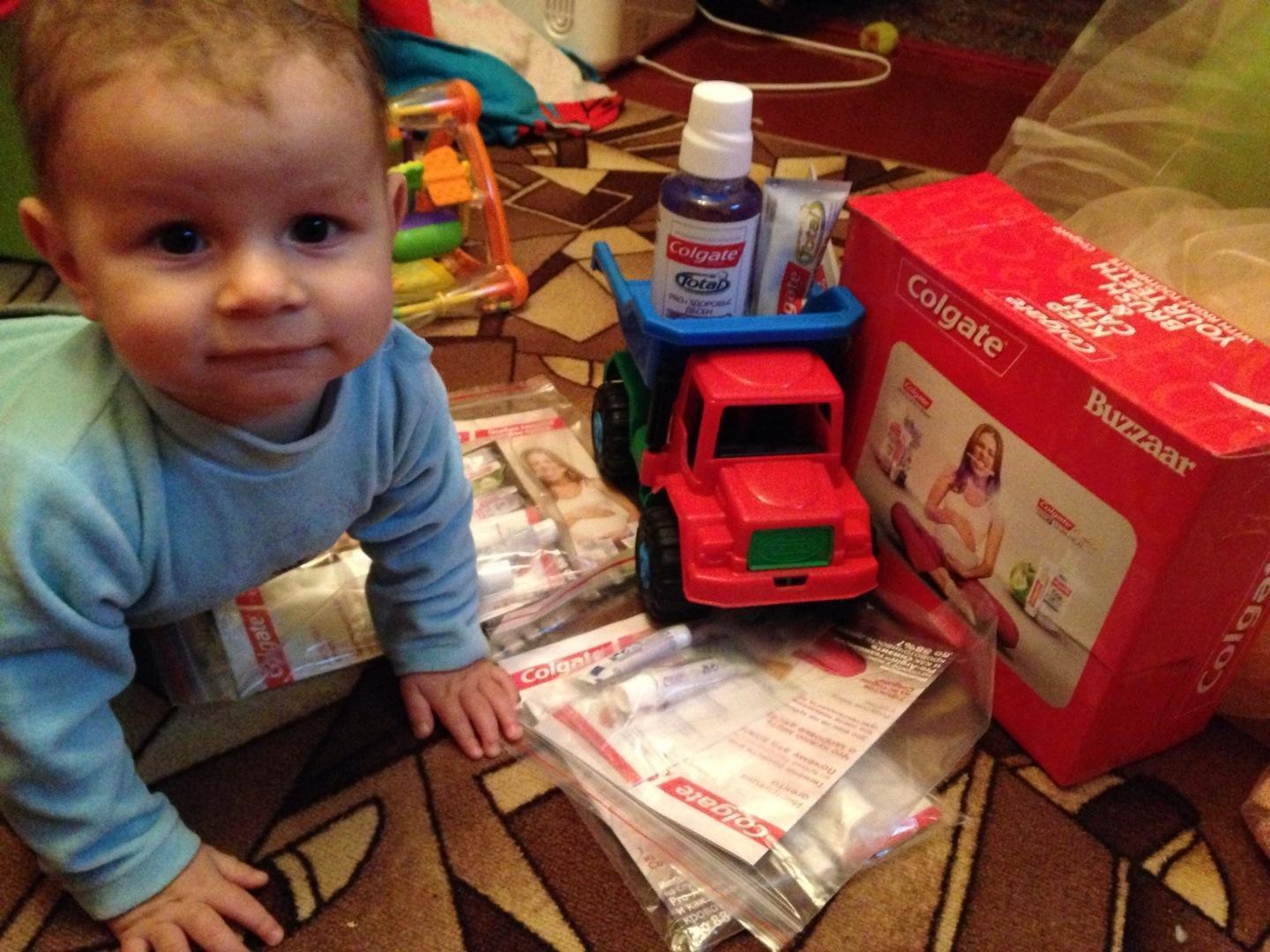 Позавчера привезли нашу посылочку Colgate))) Сынишка сразу выбрал себе подарок-зубную щетку))) и хоть мы еще совсем маленькие, но уже хотим ухаживать за зубками))) В этот же день попробовала пасту и опаласкиватель. Порадовал свежий мятный вкус, зубы после чистки стали менее чувствительными. Ура,теперь можно пить и есть без дискомфорта))) подруги уже ждут свои пробники, сегодня встречаемся)