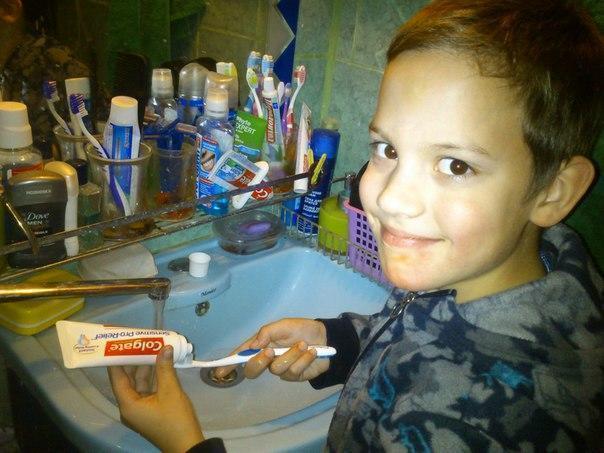 Спасибо #colgate за изобретение столь чудесной зубной пасты с формулой #ProArgin для чувствительных зубов. Вот уже почти неделю пользуюсь ей и ополаскивателем для полости рта))) Десна и правда стали чувствовать себя намного лучше, а умывание стало теперь не просто процедурой, а веселой игрой с моим старшим сыном, которому тоже очень захотелось пользоваться набором)))