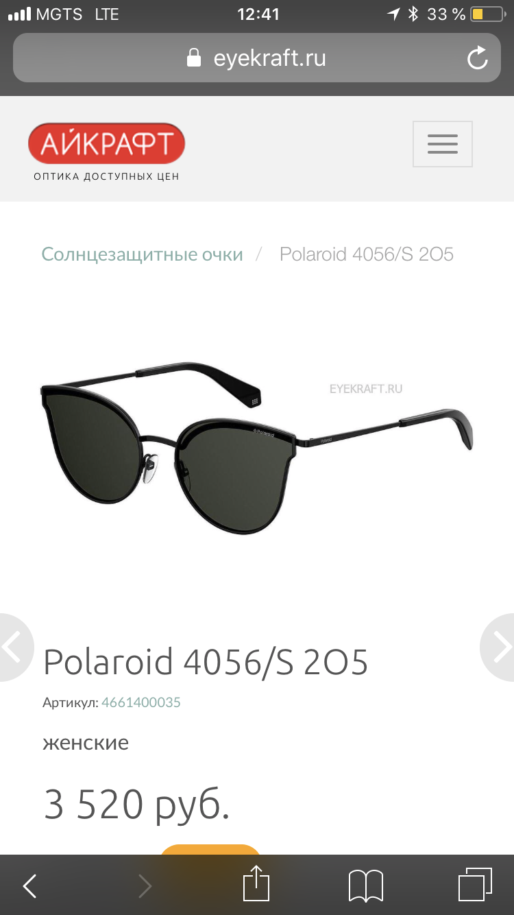 Побывала недавно в Айкрафт на Киевской. Расположение рядом с метро, но в отдалении от вокзальной суеты очень порадовало, как и сам салон. Встретили меня приветливо. Я искала солнцезащитные очки, особенно интересовали Polaroid (по совету мужа). Выбрала интересную модель в «кошачьей» оправе. Сотрудницы очень помогли, ушла довольная снова. В прошлом году заказывала себе в Айкрафт (в Кузьминках) медицинские очки и успела уже тогда оценить сервис. Зрение проверяют бесплатно, вносят данные в базу и по номеру телефона легко можно в любом салоне к ним возвращаться. Удобно.
